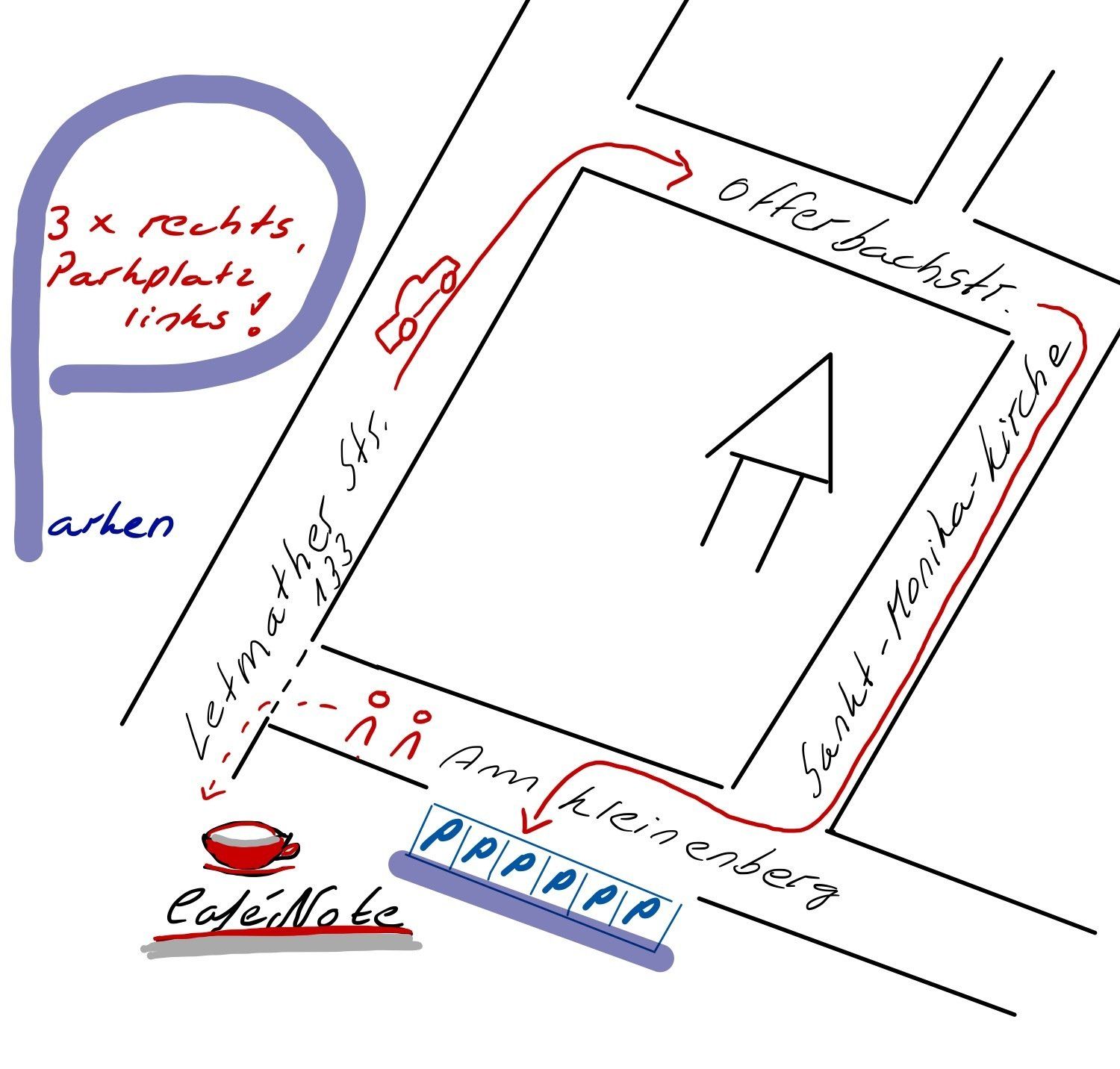 Vom Parkplatz Am Kleinenberg führt Sie ein kleiner Fußweg direkt wieder auf die Letmather Straße zur CaféNote.